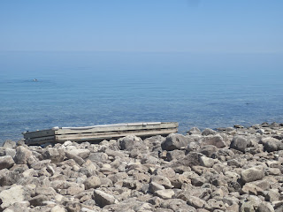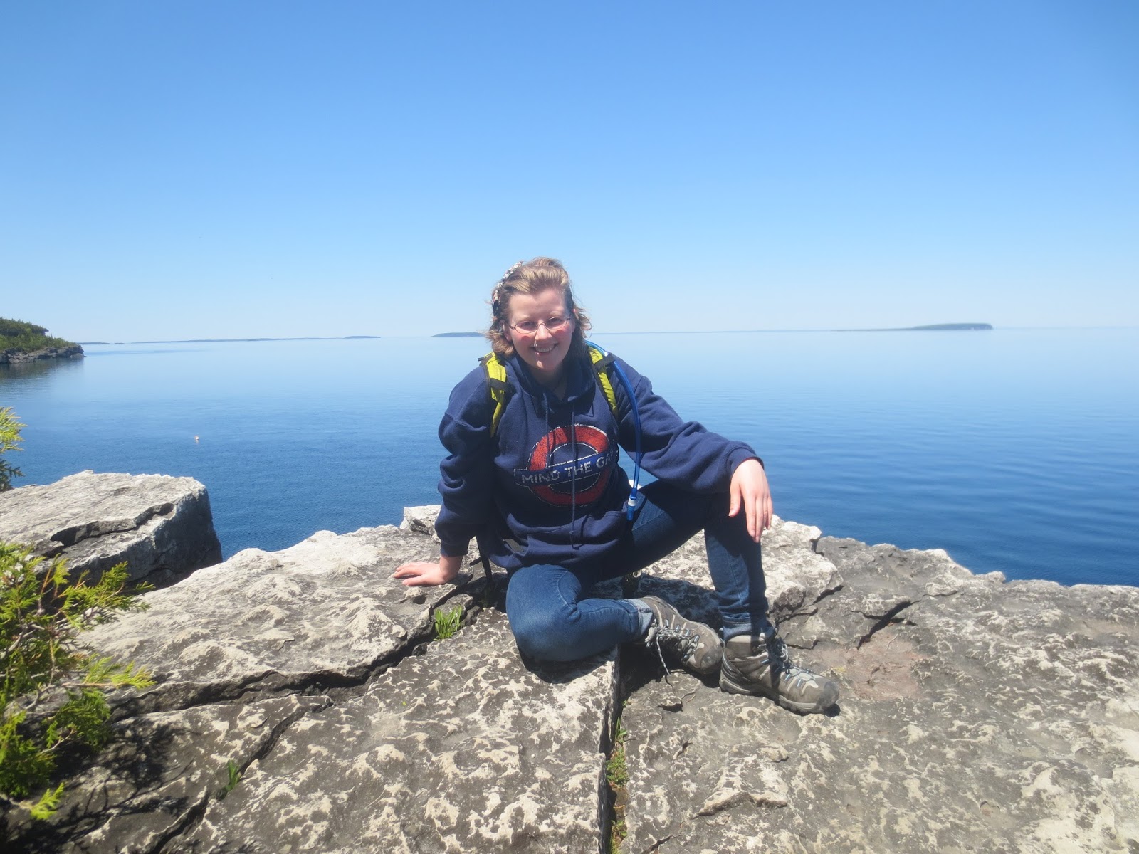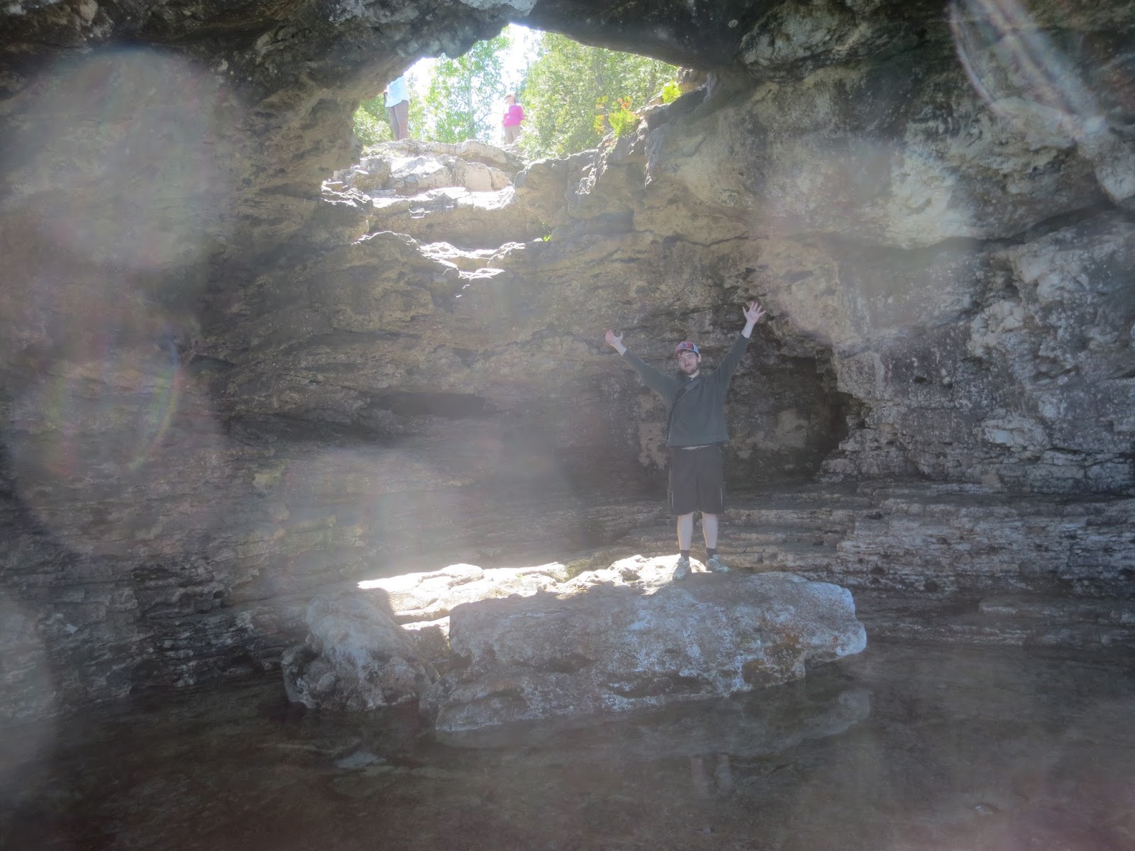 Bruce Peninsula is famous for it's crystal clear waters and it's most famous attraction, the Grotto. The Grotto is a deep pool inside a cave at the bottom of a limestone cliff side. We climbed down to explore and realized that there was an under water opening in the cave to the other side. Bill was excited to explore it and we went back to our site to grab our bathing suits. The water, while tropical in it's clarity, seemed so inviting however it was extremely cold. We later learned from locals that the ice had only left the bay a few weeks prior.
