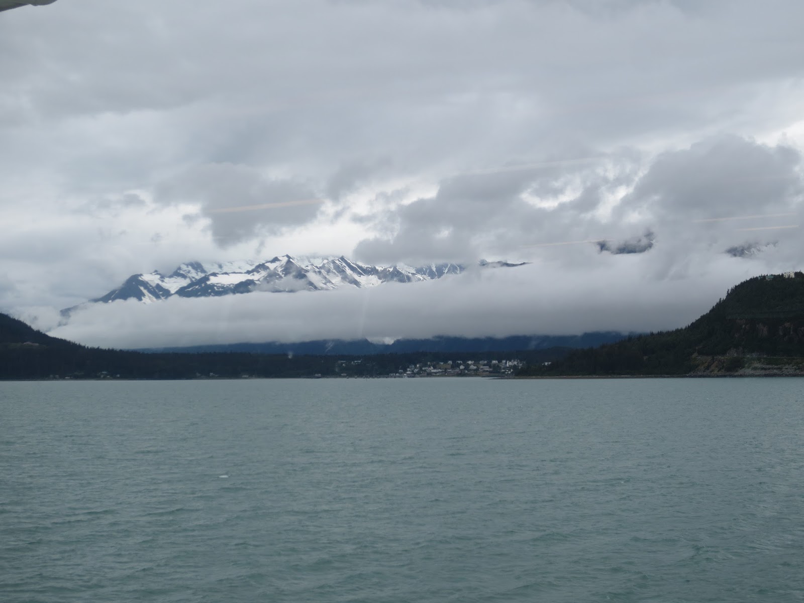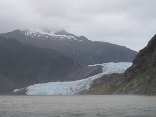 Our ferry to Juneau from Skagway arrived two hours late but it was a gorgeous ride once we got on. For this leg of our journey we were on one of the older, larger ferrys equipped with a full cafeteria and hot showers. We didn't get to use the showers but the grilled cheese was a nice snack. Besides the scenery outside the windows we ended up sorting our numerous photos and Bill played some his computer games.We also watched some tv shows on our laptop.