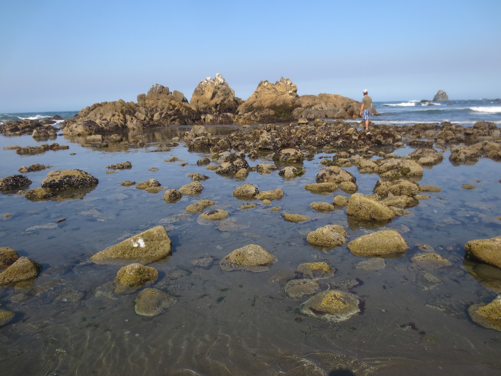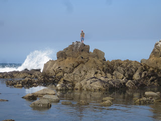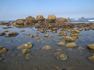 Stopped in to stretch our legs at this scenic turnout. Bill found some rocks to climb, only to get trapped out there by the incoming tide. I laughed at him as he gave up and took his socks and shoes off to wade back.