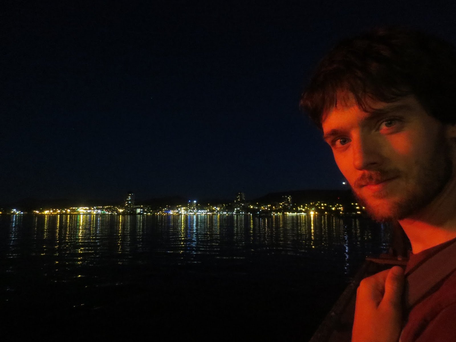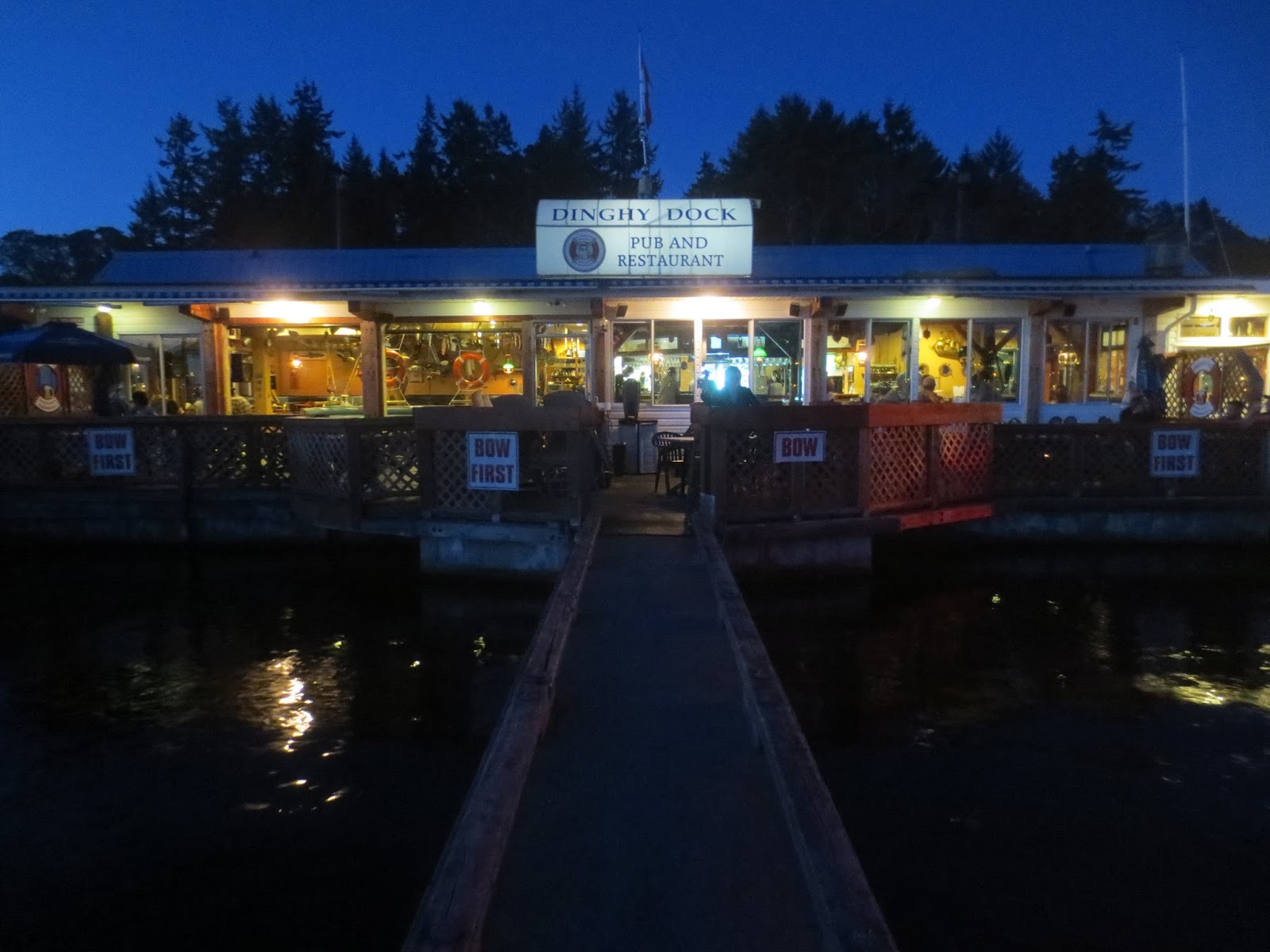 Lots of walking and eating in the sun had us tired out so we went back to the hostel to relax for a few hours, I took a short nap. In the evening we were ready to hit the town again and walked back down to the waterfront to catch a ferry over to the Dingy Dock Pub, a floating pub just off an island.