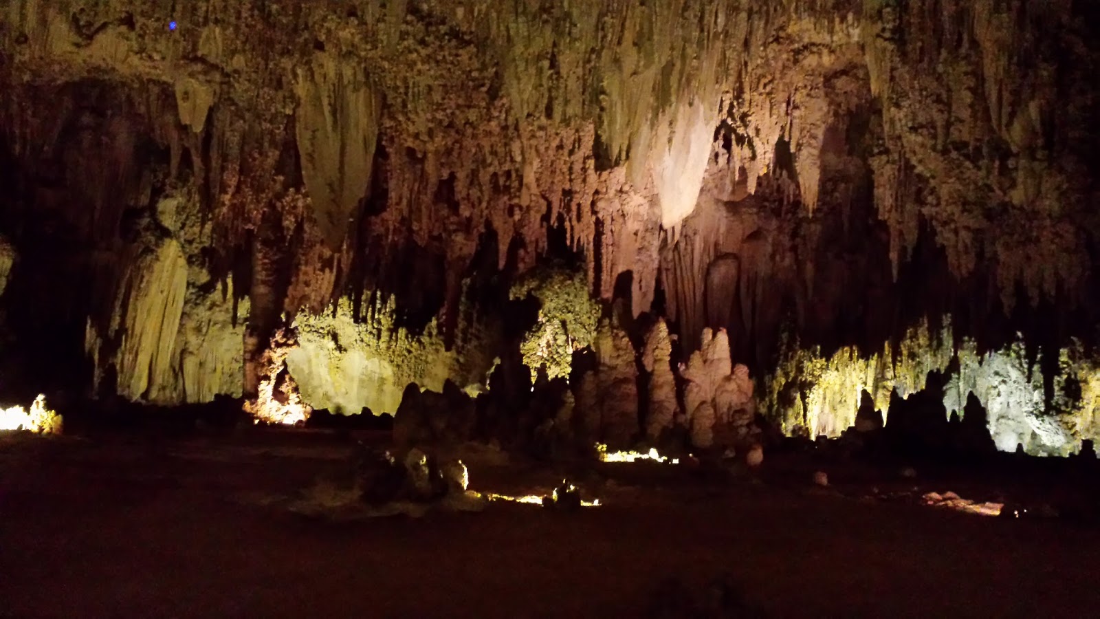 The natural state of the cave is complete darkness. It's artificially lit with low lighting to highlight some of the more notable rock formations and to allow better visibility for the tourists.