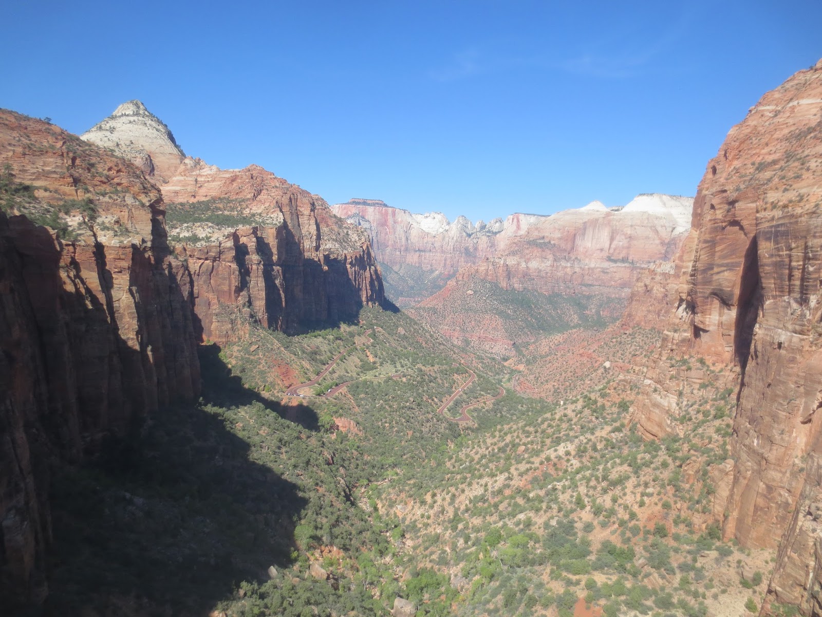 The next morning we got up very early with the intention of hiking the famous Angel's Landing, but we chickened out and did the canyon overlook hike instead. The hike short but had some tricky parts to it. The reward was a breathtaking view from up top.