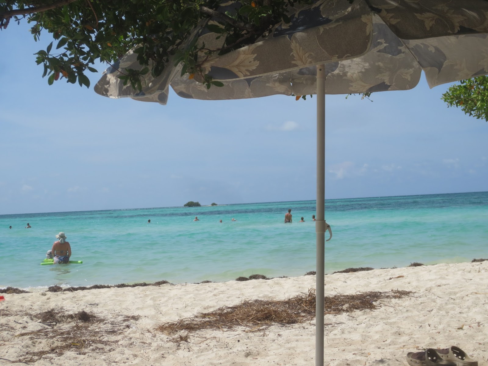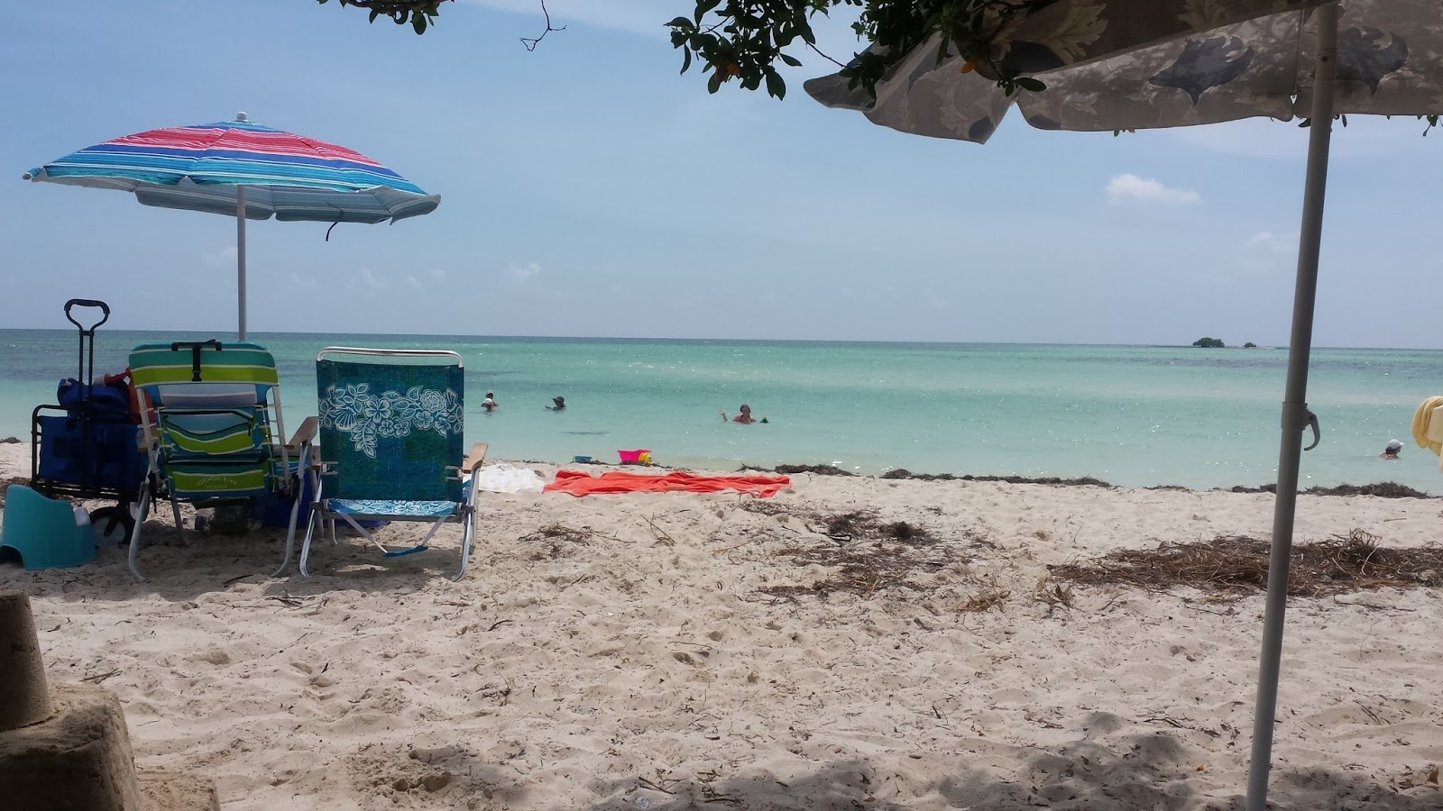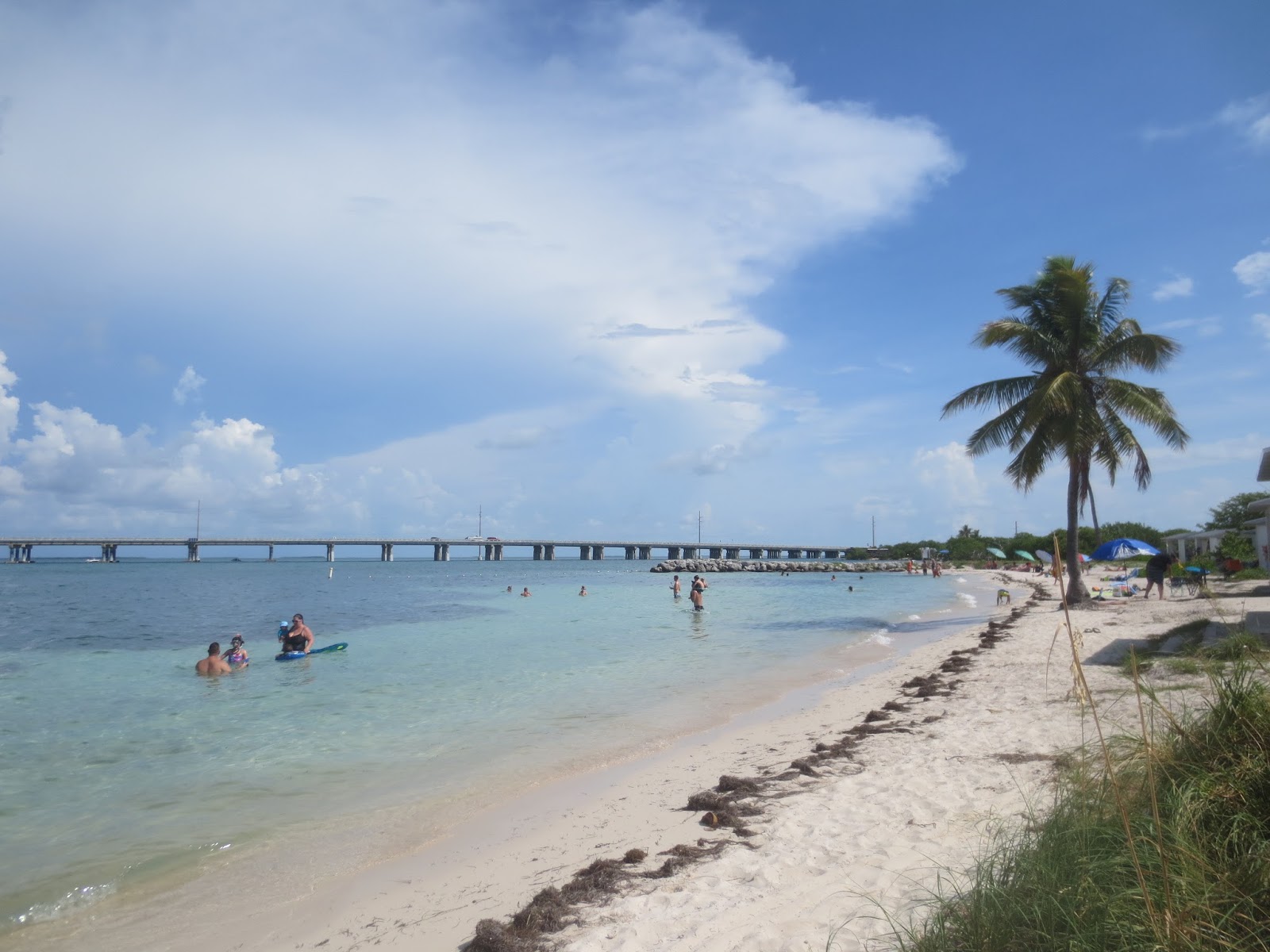 | One of many white sand beaches that surround the key. In the distance is the highway that connects the keys to the mainland. It took three hours to drive the length of it |