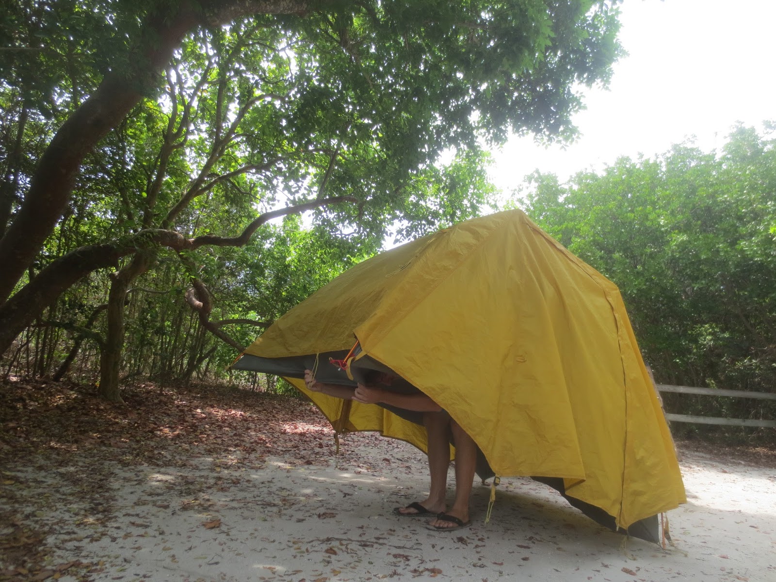 Bahia Honda is such a popular state park that when I booked our site I wasn't able to book for two nights. Luckily, the sight next door was available for the following night so before we headed out for the day we moved all of our stuff one site down. This is Bill's method for moving our tent without taking it down or deflating the air mattress.